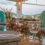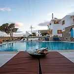 Villa Dimitra dysponuje tarasem z widokiem na basen, 15 min jazdy od lotniska Mykonos.